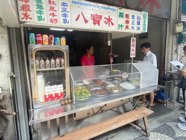 價錢分布於30~60,她的紅豆牛奶冰八寶冰都榮獲特色獎,這家是在西元1952年開始經營,營業時間10:30-11:00~7:00-8:30冬天糯米湯圓.紅豆湯.綠豆湯.熱飲。