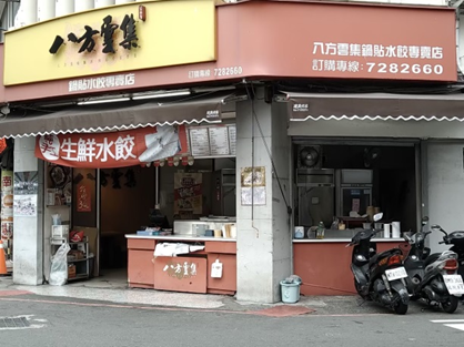 店面招牌為辣味鍋貼 韭菜水餃 玉米濃湯 珍珠炒手 古早味乾麵